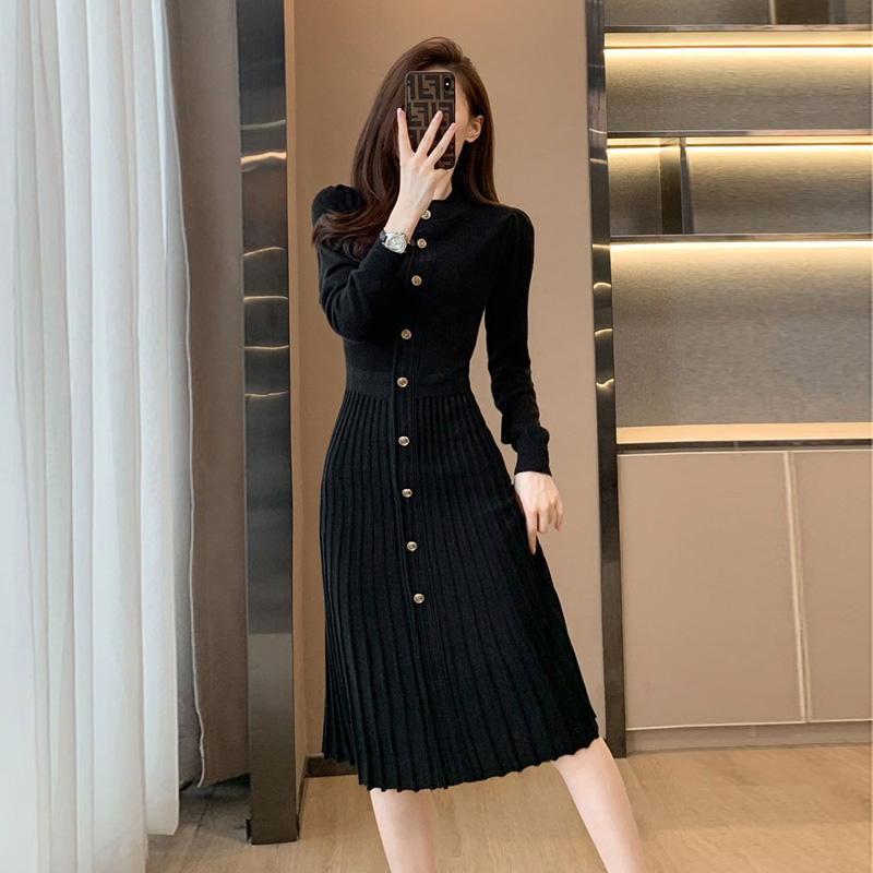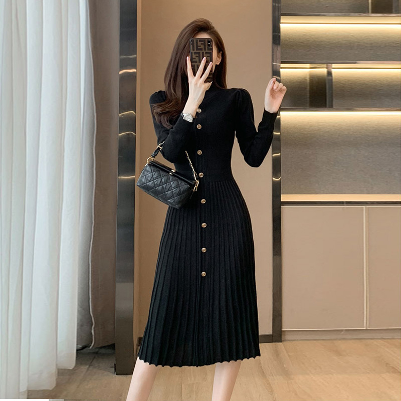 法式小香风内搭打底针织连衣裙女秋冬新款高级感配大衣中长款裙子