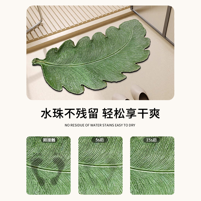 绿植硅藻泥浴室吸水地垫卫生间门口叶子脚垫厕所浴缸淋浴房防滑垫