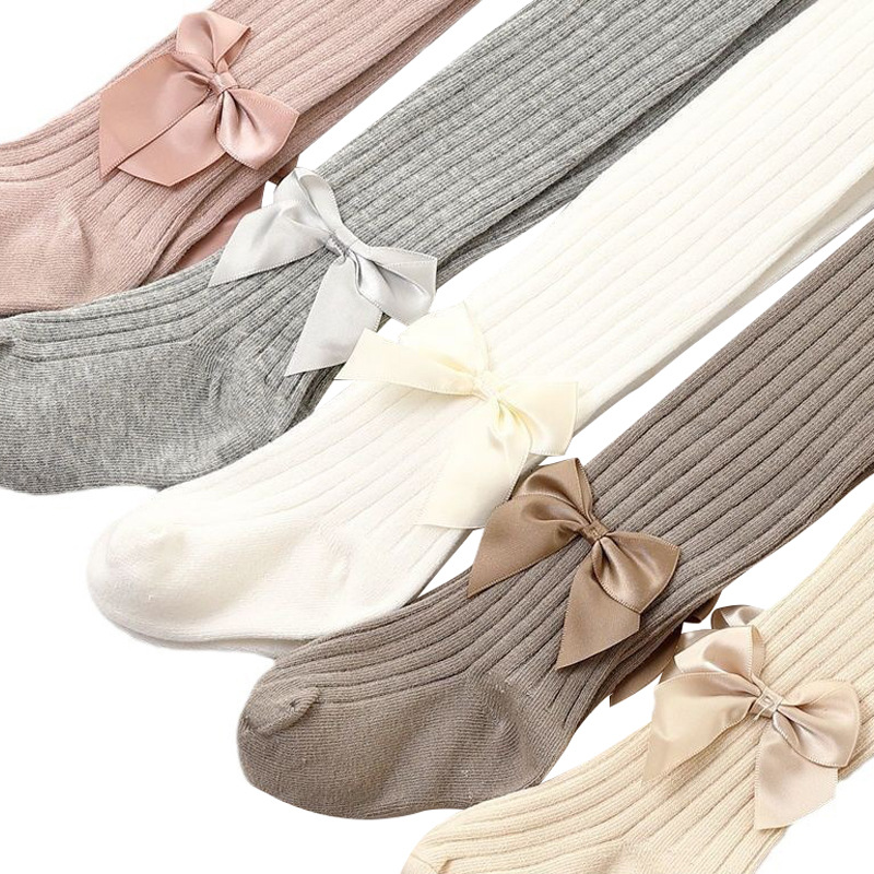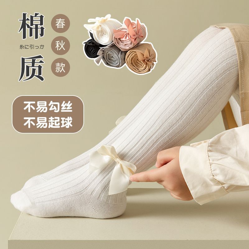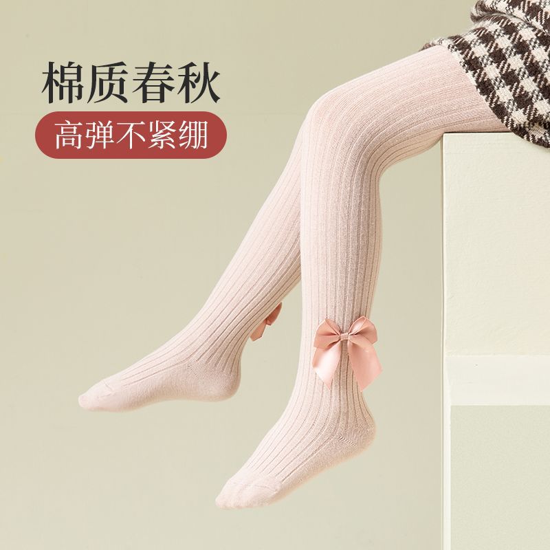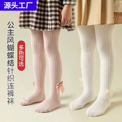 儿连裤袜春夏女打底裤棉竖条秋冬女大蝴蝶结加厚袜子外穿
