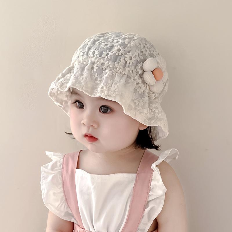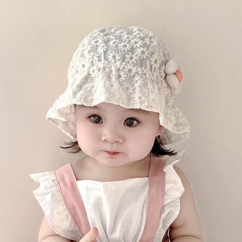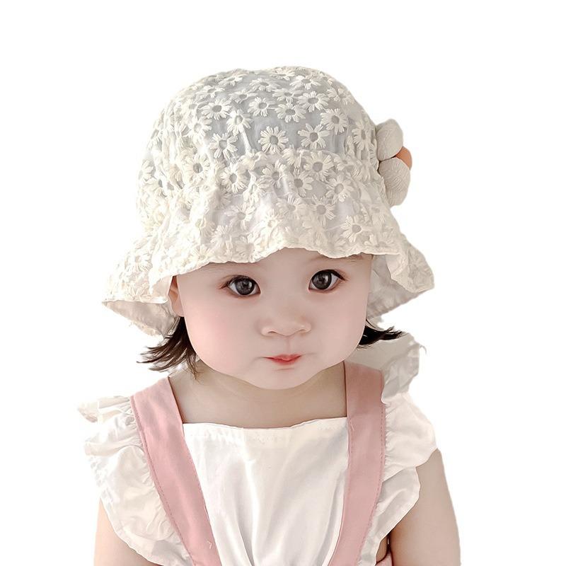 婴儿防晒帽子夏季薄款韩系女宝宝棉小月龄渔夫帽遮阳松紧胎帽潮