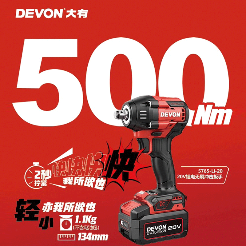 大有5765锂电无刷20V充电式电动扳手冲击扳手汽修大扭力