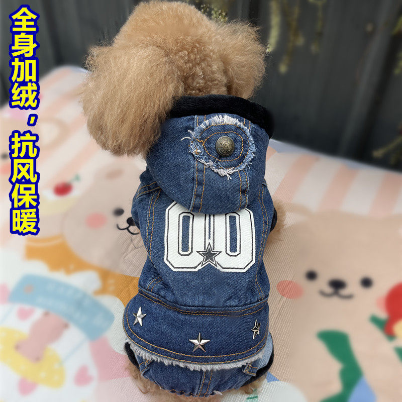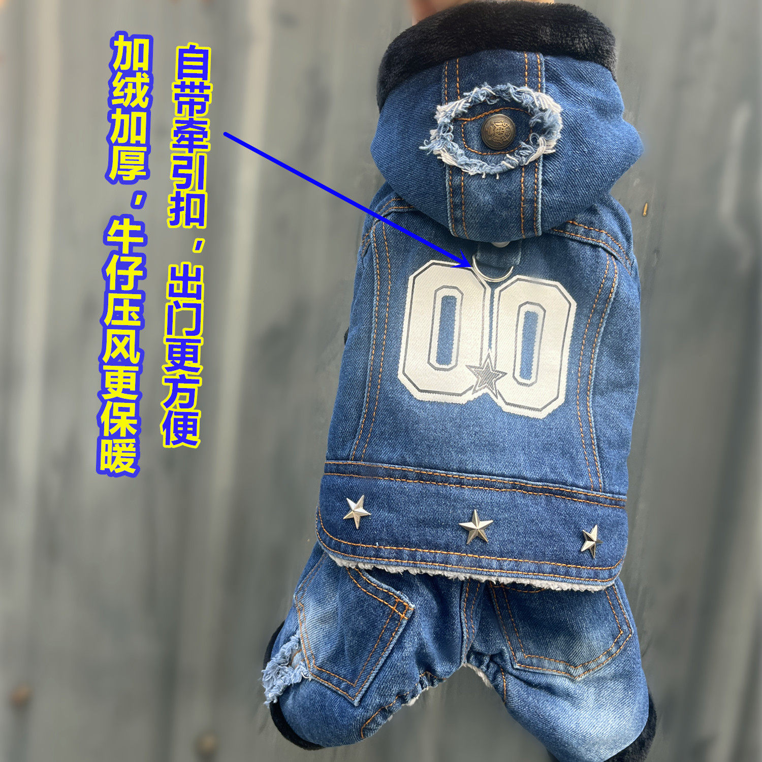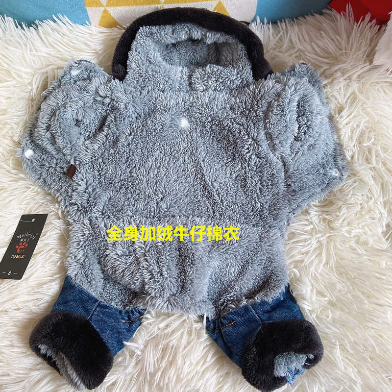 新款宠物衣服秋冬装泰迪比熊博美小型犬四脚衣加绒狗狗牛仔衣棉衣
