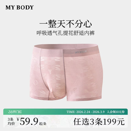 3件199|商场同款MYBODY新款男士内裤提花舒适平角裤四角短裤男生