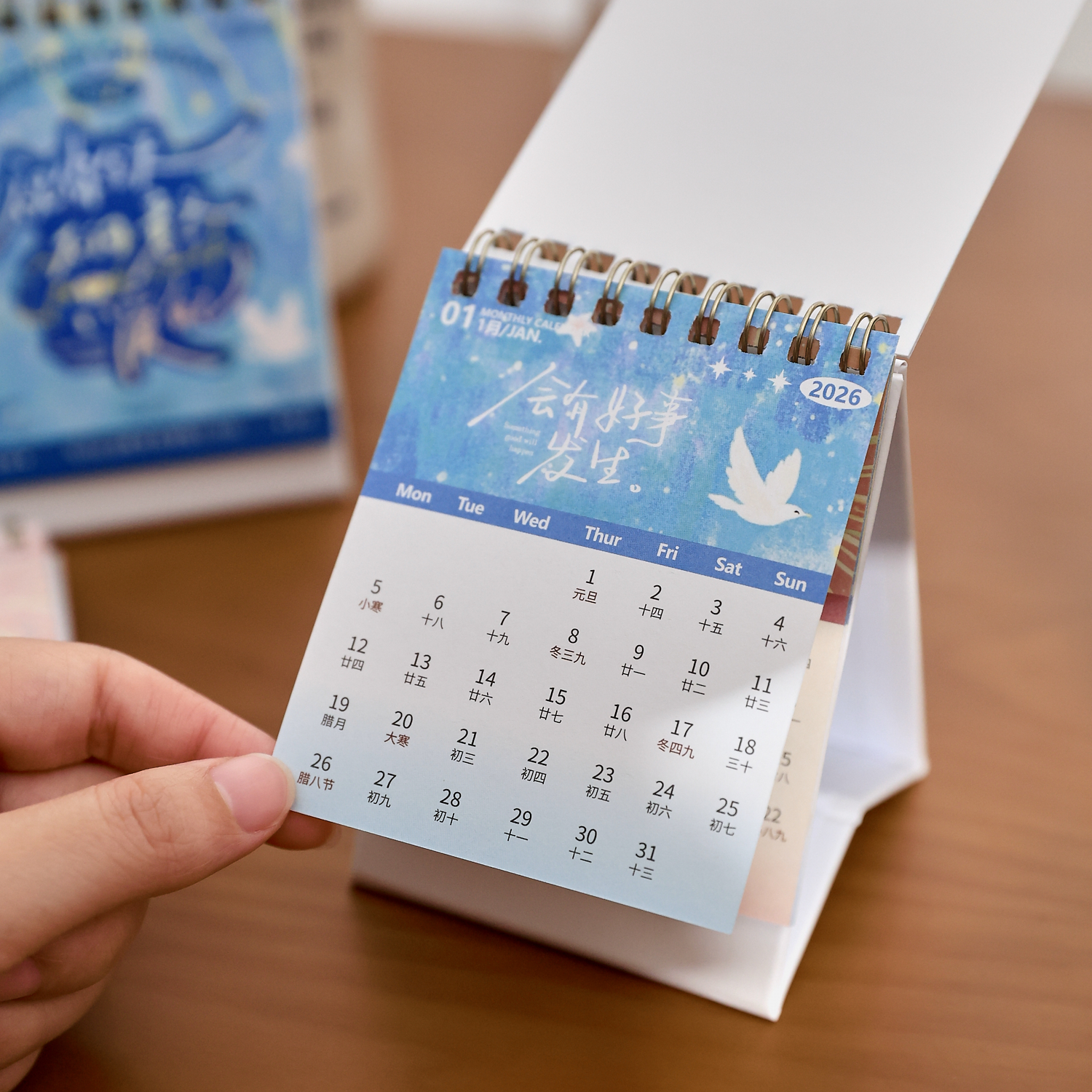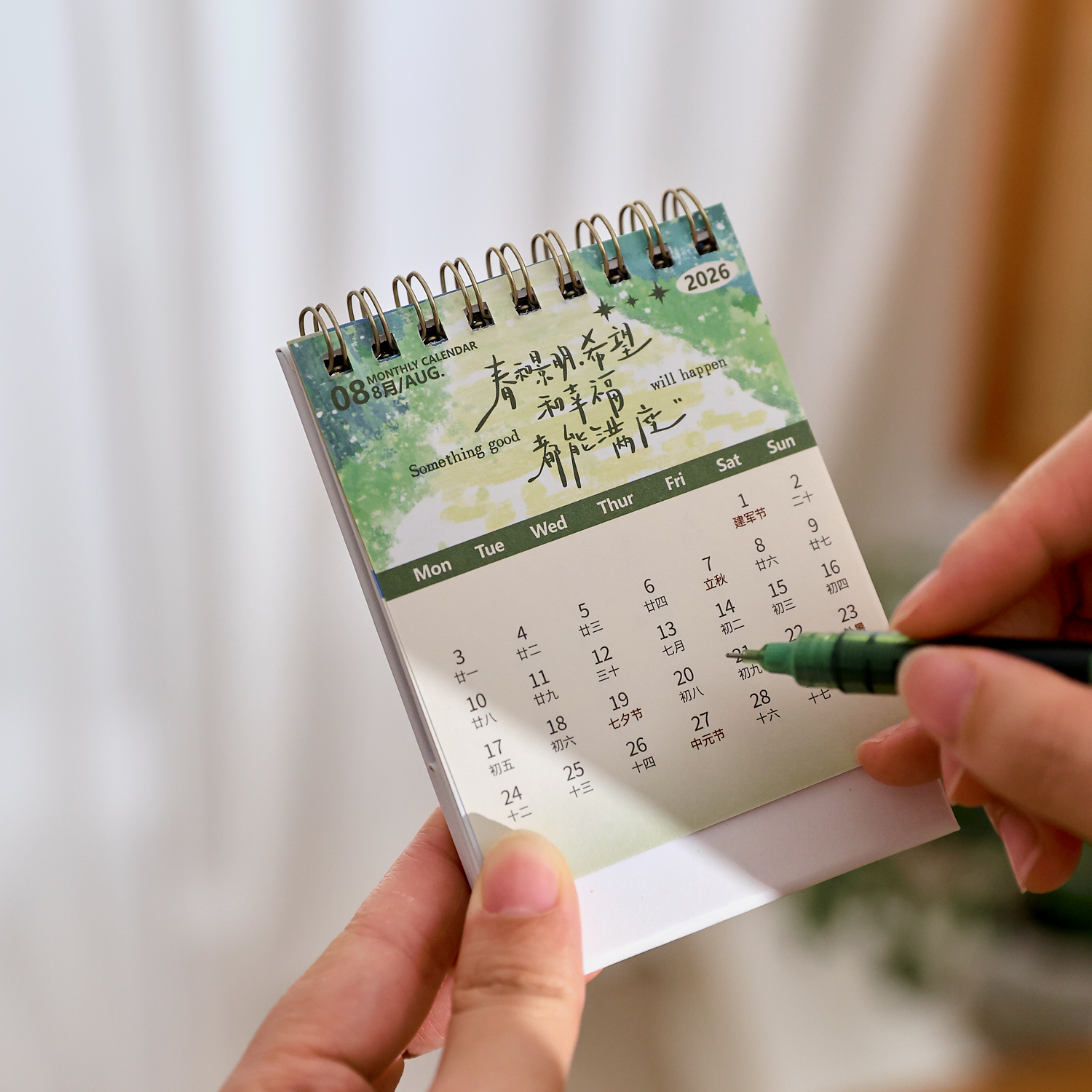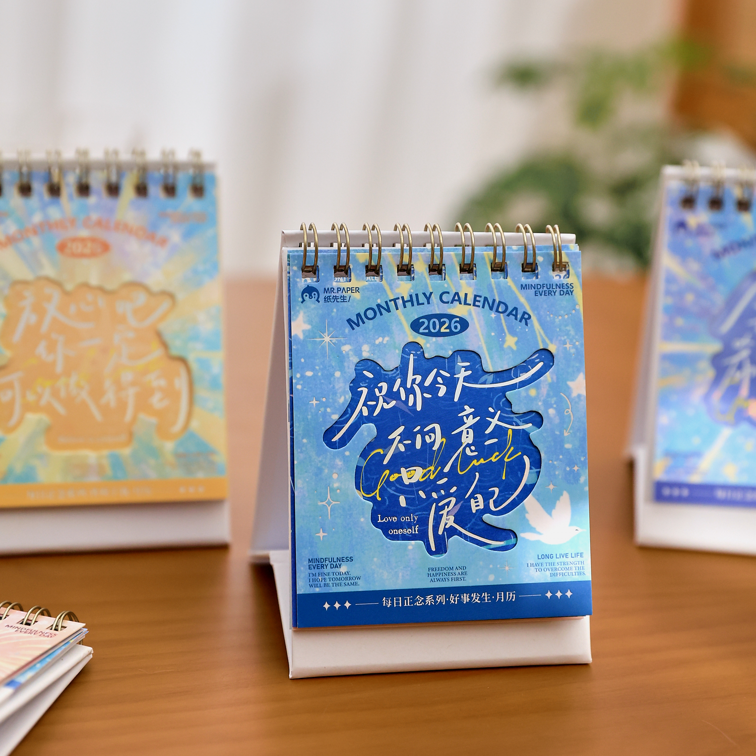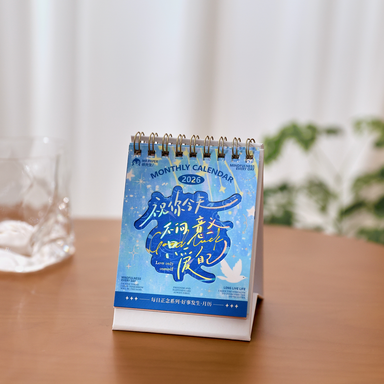 2026年每日正念镂空彩页迷你日历 励志祝福文案DIY打卡计划本台历