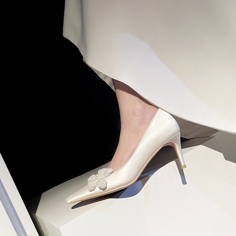 婚鞋主婚纱鞋白色法式新娘鞋高级感新款高跟礼服鞋日常不累脚单鞋