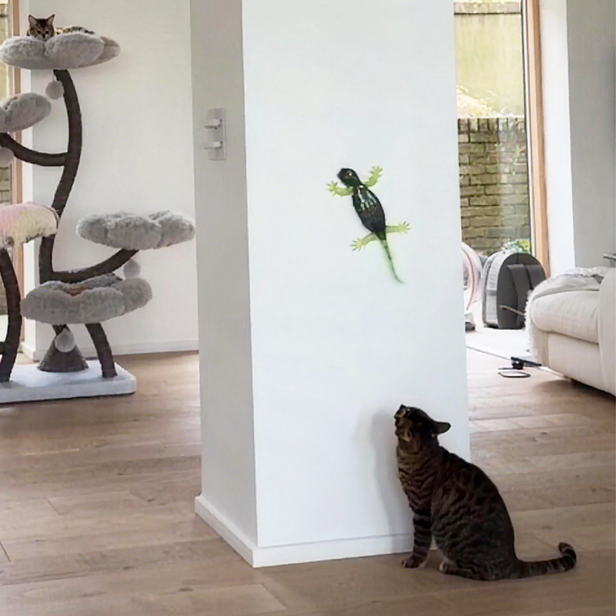 壁虎爬上墙!猫咪疯玩停不下来!