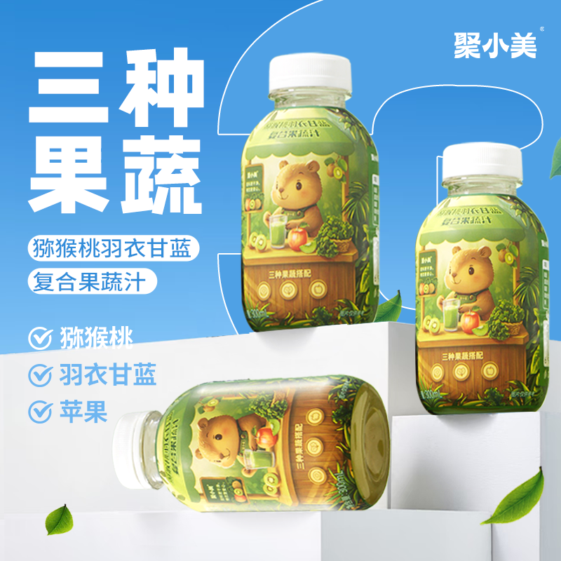 聚小美猕猴桃羽衣甘蓝果蔬汁100%果汁饮品 300mL*6瓶