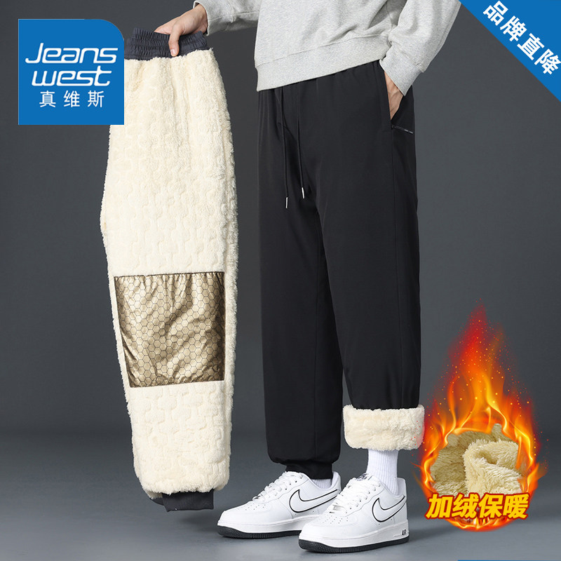 真维斯羊羔绒休闲裤男款秋冬季宽松百搭加绒加厚美式直筒保暖裤子