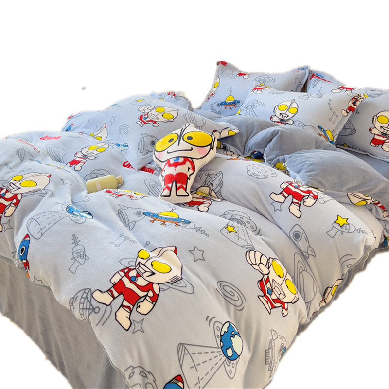 奥特曼卡通牛奶绒四件套珊瑚法兰绒床单笠被套儿童宿舍床品冬保暖