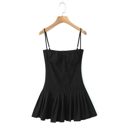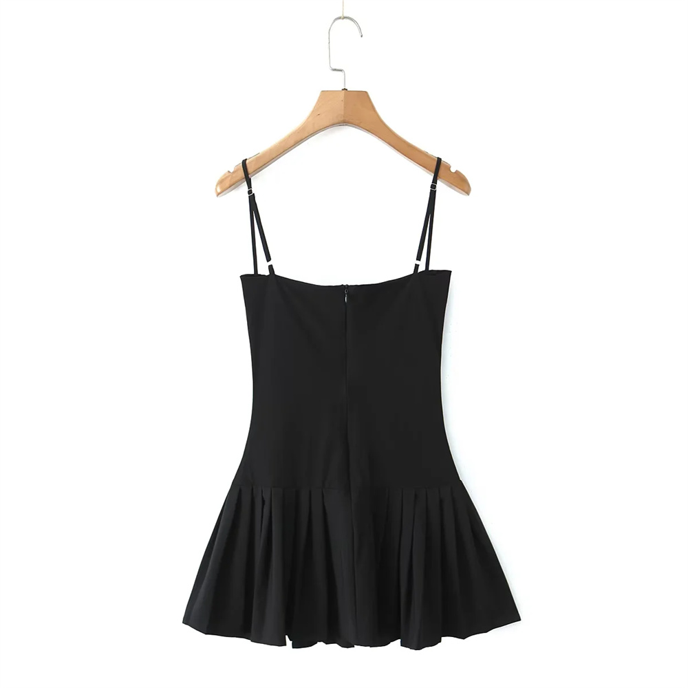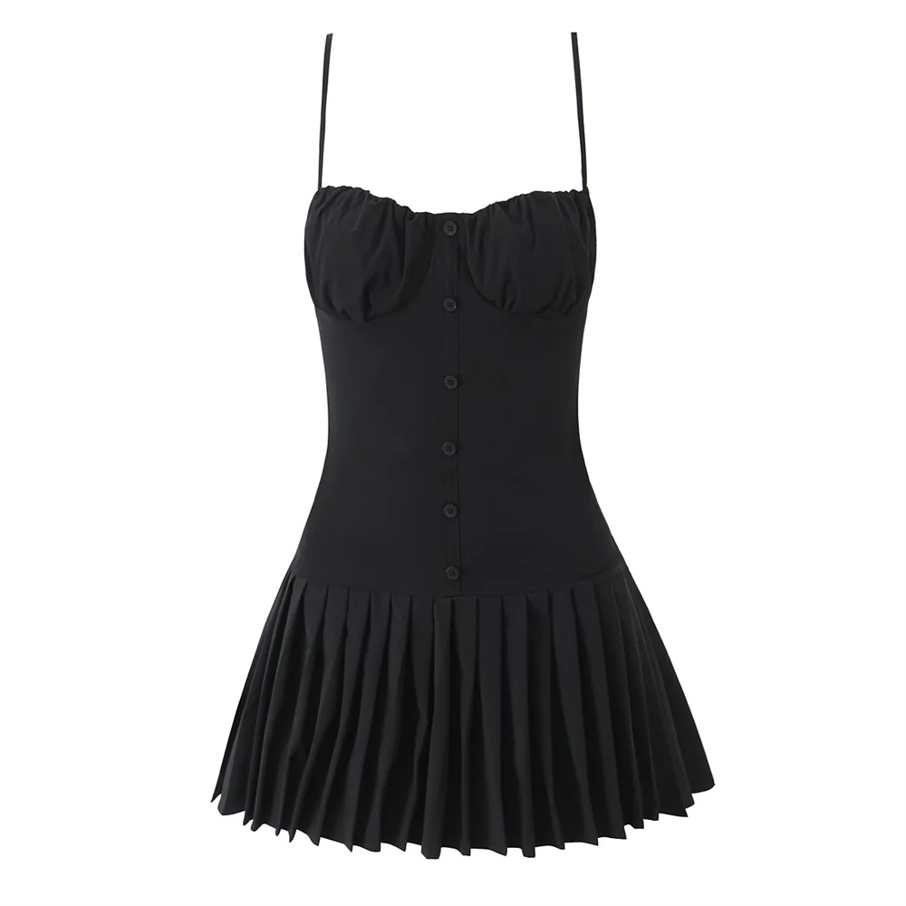 欧美辣妹黑色吊带连衣裙女夏季新款修身显瘦拼接百褶裙抹胸短裙子