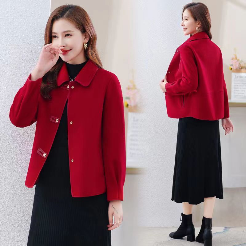 清仓捡漏双面绒短外套春秋女装双面呢上衣妈妈装洋气羊毛呢外套女
