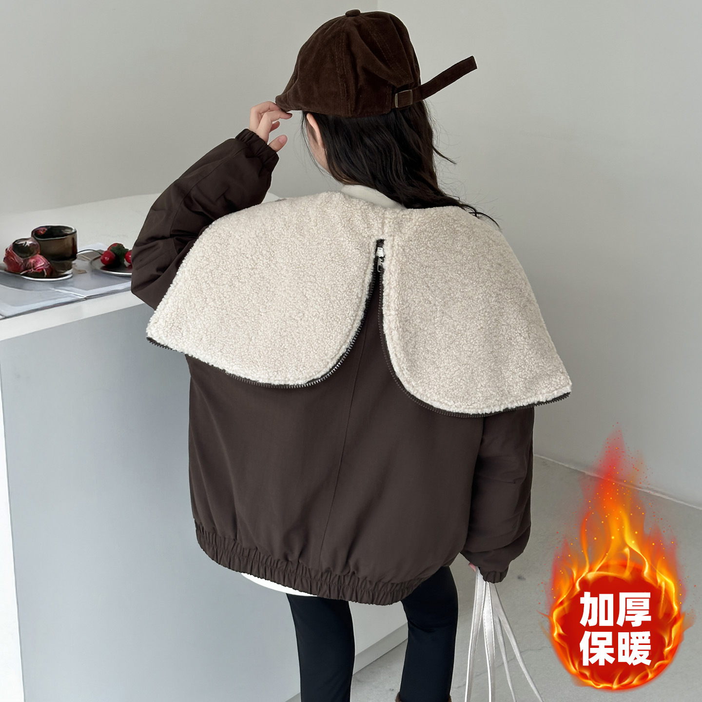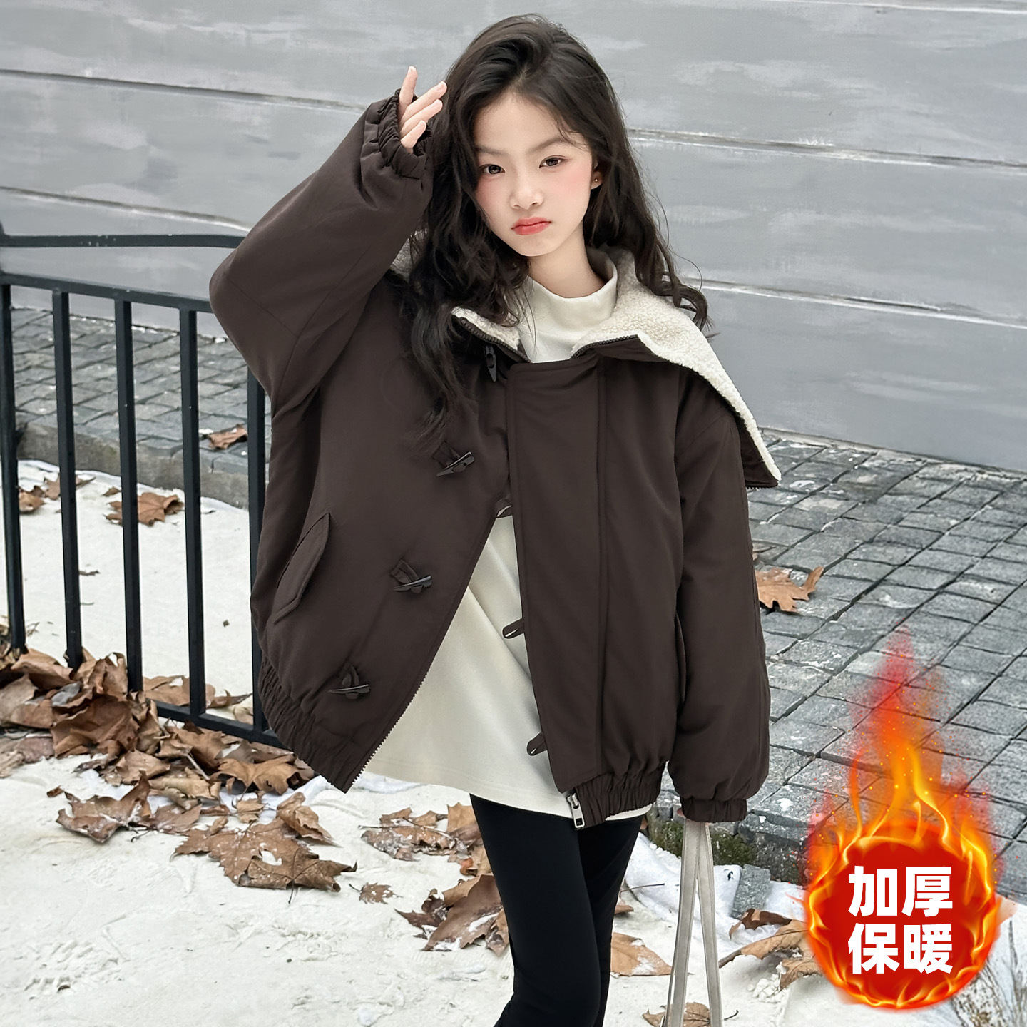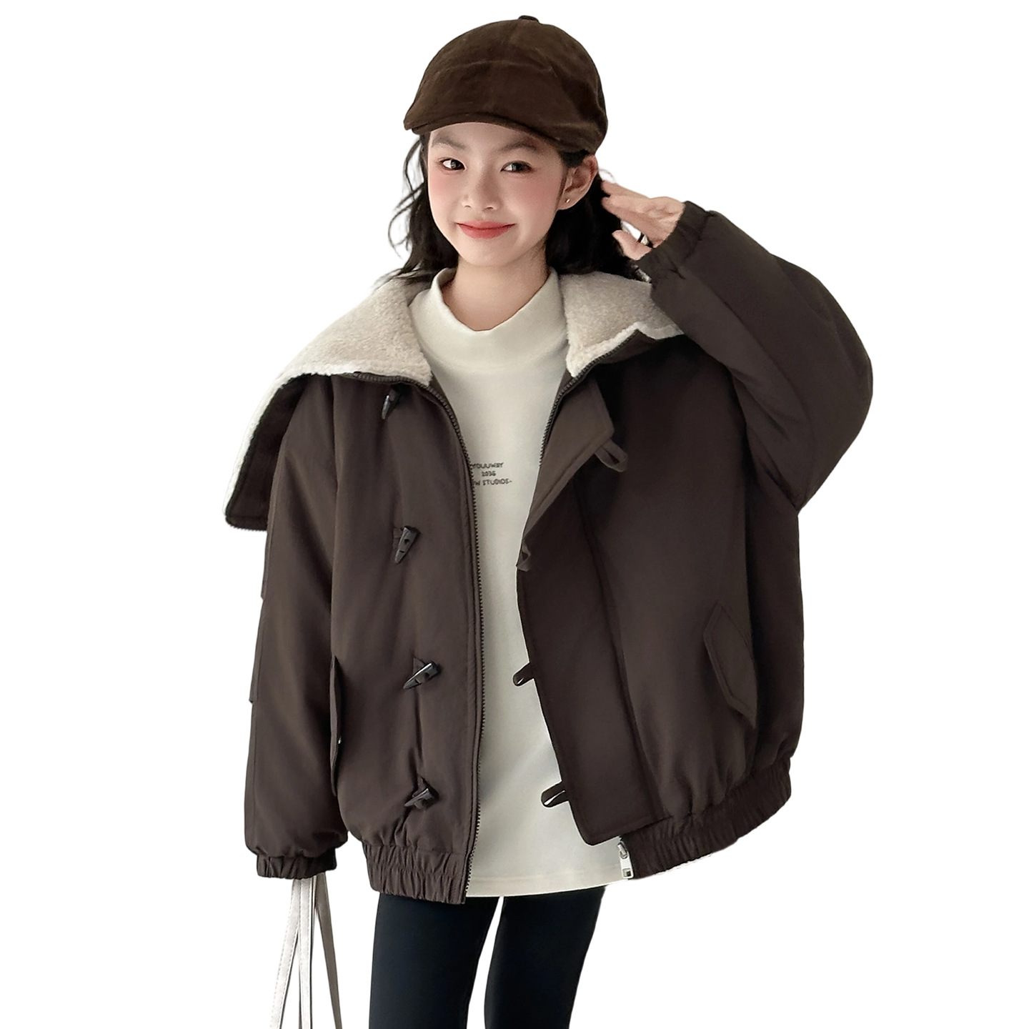 韩系女童冬装棉服2025新款洋气女孩时髦大翻领羽绒棉衣保暖外套