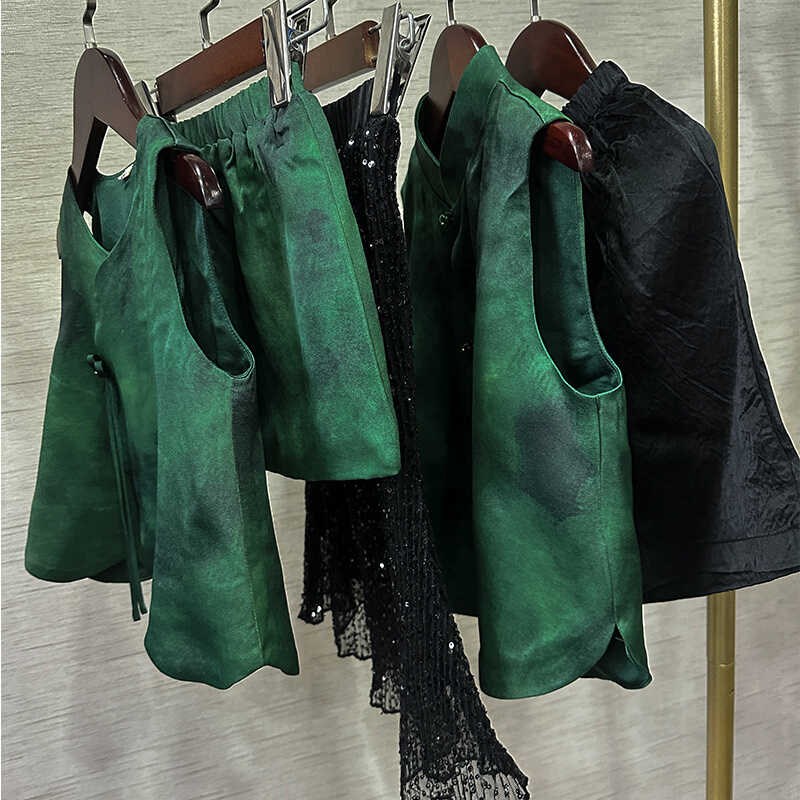高端祖母绿香云纱马甲国风汉服夏季亲子装男女儿童唐装新中式套装