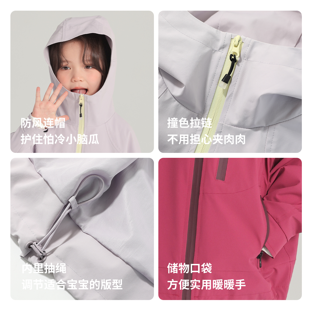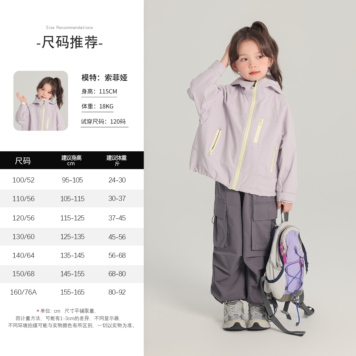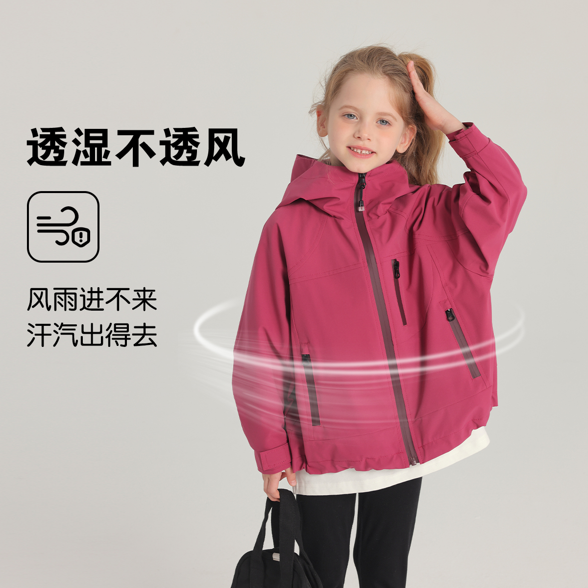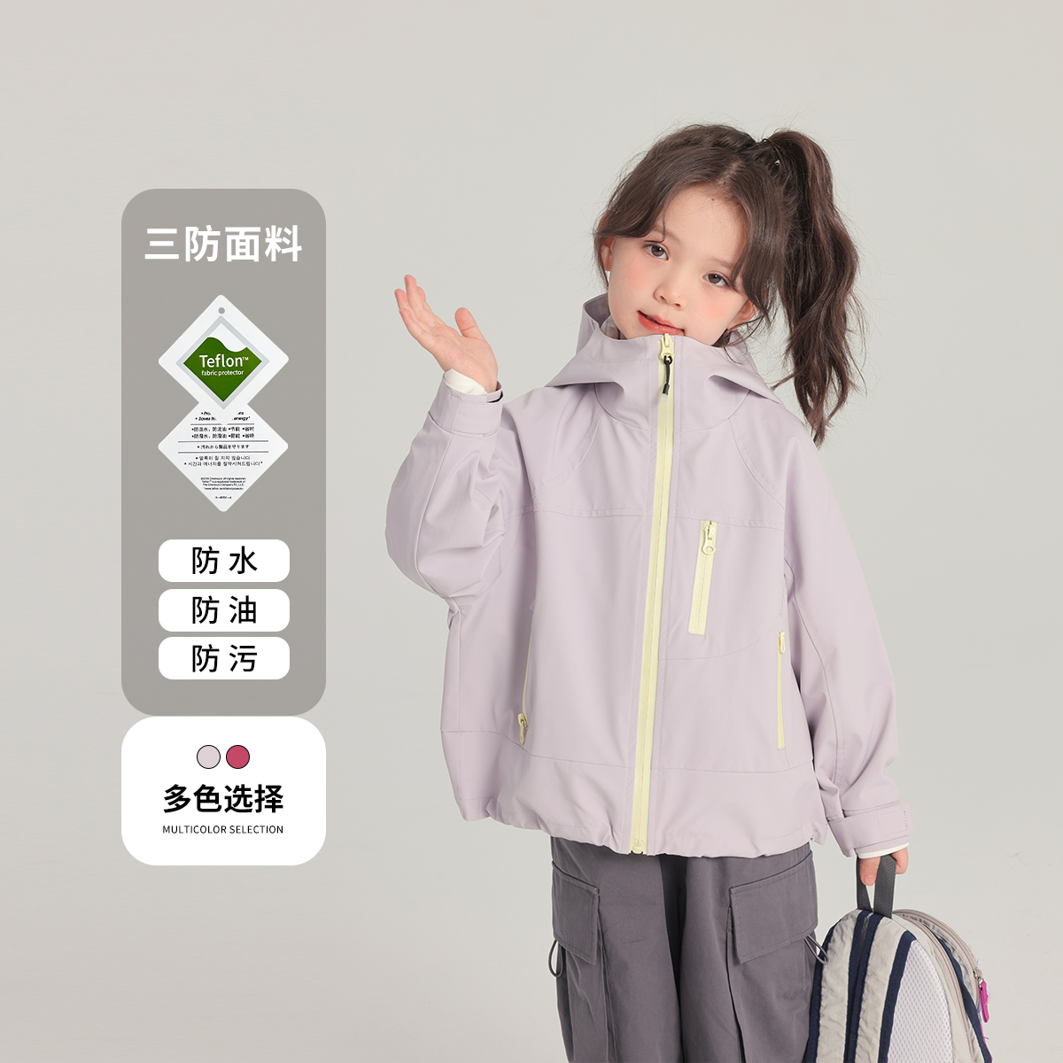 布丁哈鲁春装女童上衣2025春秋新款儿童洋气户外连帽三防冲锋外套