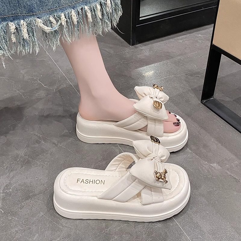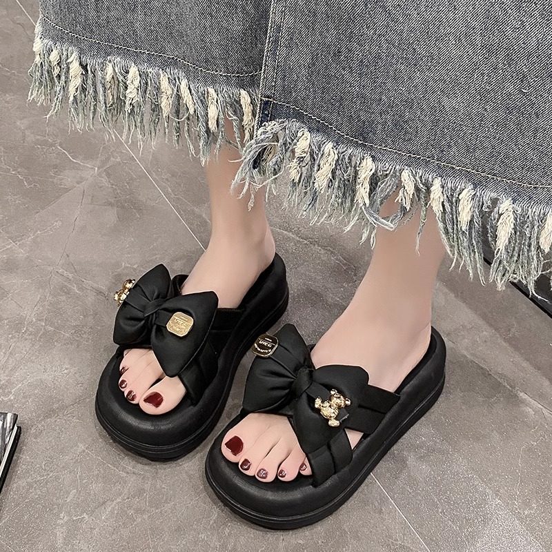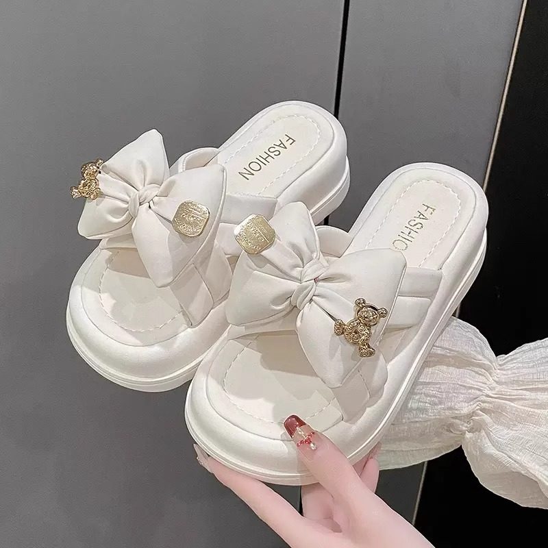 高级感哑光真皮夏季外穿凉拖鞋女2025新款室外牛皮小熊厚底拖鞋女