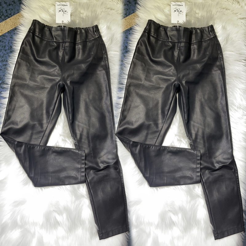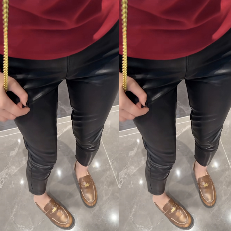 欧货新款PU皮裤女松紧腰修身显瘦铅笔裤弹力时尚打底仿羊皮九分裤