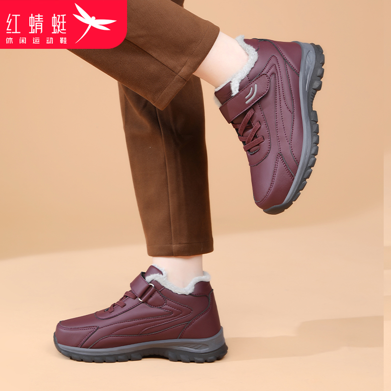 红蜻蜓女鞋冬季休闲运动鞋棉鞋女加绒加厚保暖老人中老年妈妈冬天