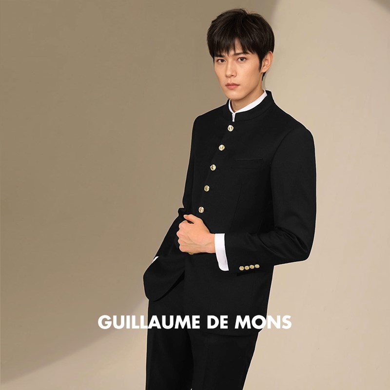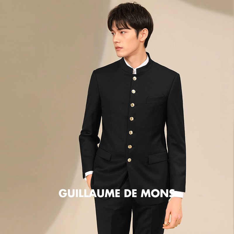 【澳嘉】纯羊毛中山装黑色男士商务正装西装结婚礼服西服套装男