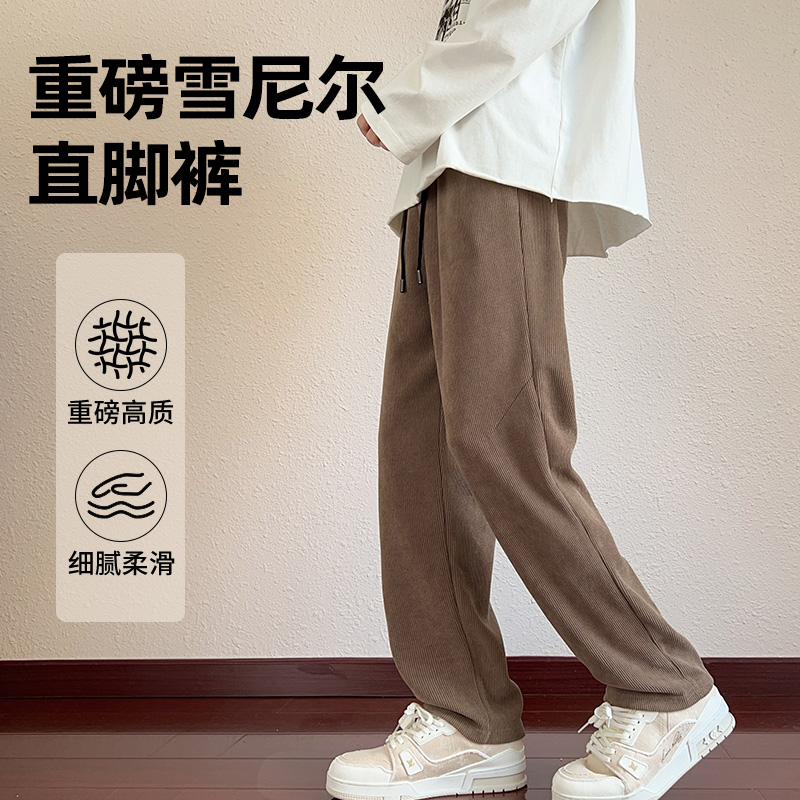 回力加绒男款裤子秋冬季新款肌理感保暖休闲裤男生雪尼尔直筒裤A