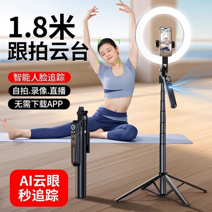 智能跟拍云台自拍杆360度旋转手机自拍演唱会拍摄神器新款通用自动人脸追踪直播支架专用旅游便携落地三脚架