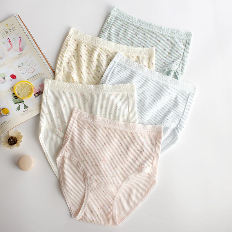 外贸内裤女原单日单出口日本高腰女内裤大码简约小碎花纯棉女士三