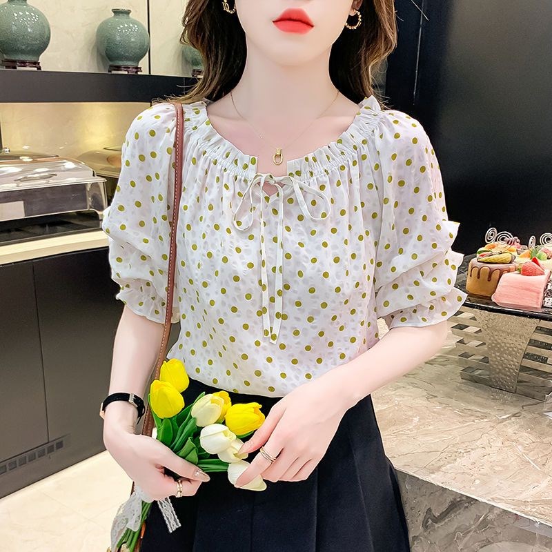 衬衫女2024夏季新款法式波点一字肩洋气显瘦百搭气质减龄雪纺小衫