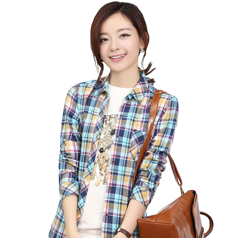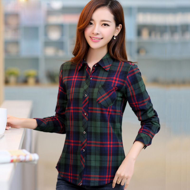 纯棉格子衬衫女长袖2025春秋大码磨毛衬衣女休闲打底韩版修身外套