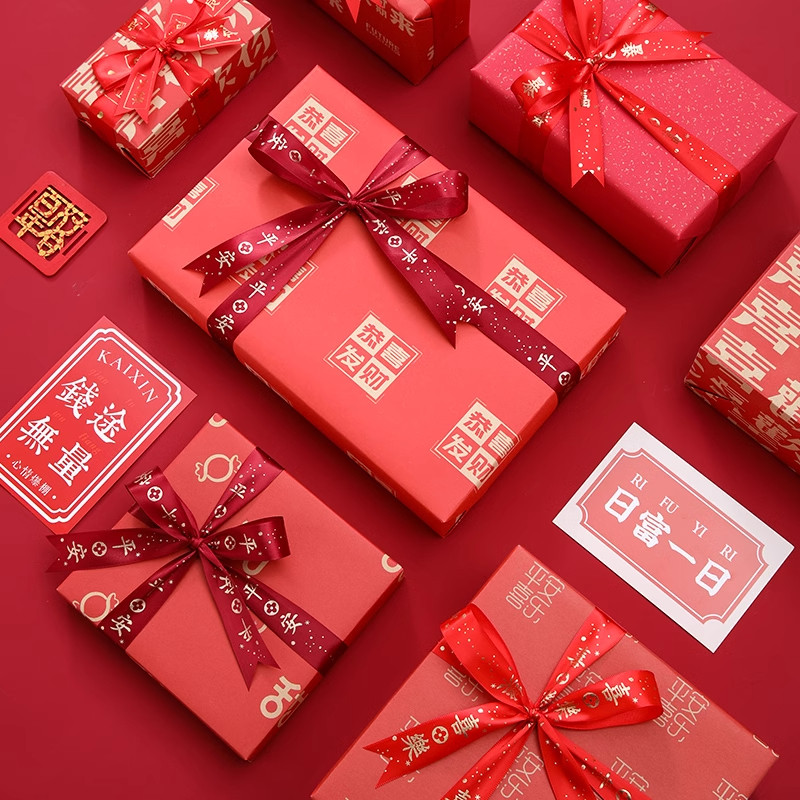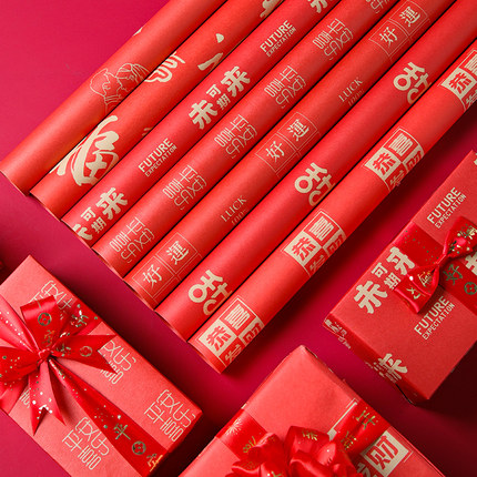 新年大红色礼物牛皮包装纸结婚鲜花包花纸伴手礼手工礼盒礼品资材