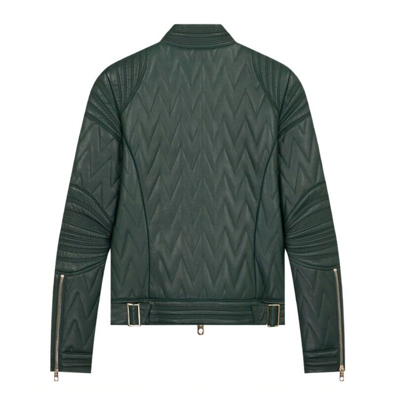EMPORIO ARMANI 羊皮拉链女士休闲夹克皮衣外套银泰百货 301604