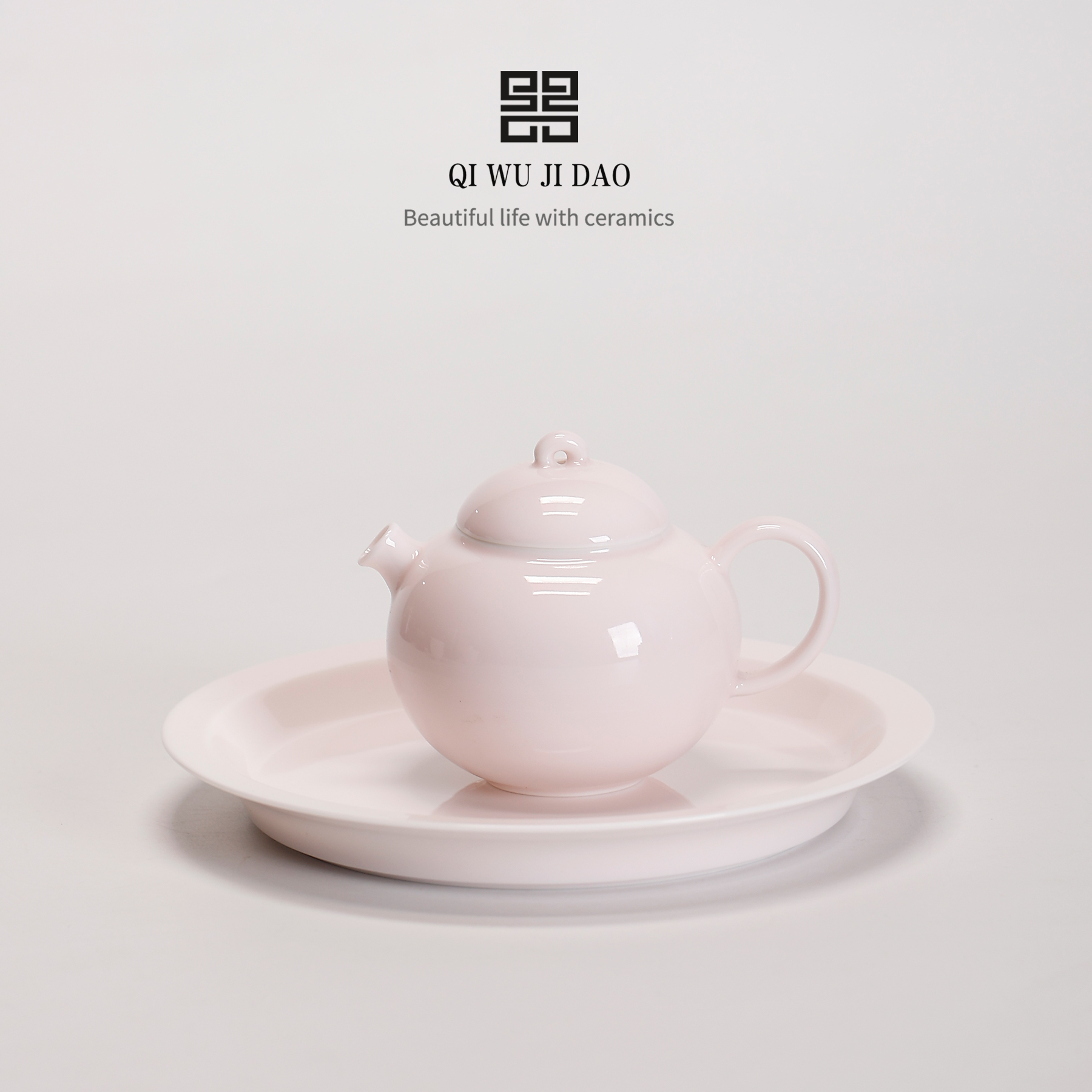 浅樱粉简约纯色壶承淡粉色陶瓷
