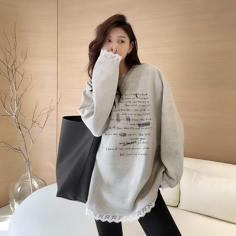 蕾丝花边打底衫女内搭宽松胖mm大码女装中长款上衣女遮屁股洋气冬