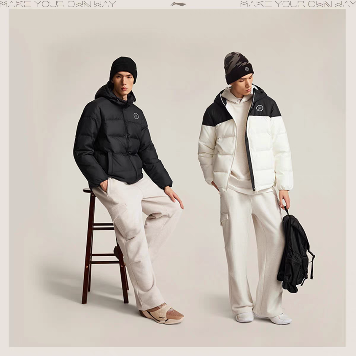 李宁羽绒服2025冬季新品韦德系列男子防泼水鹅绒短羽绒服AYMV065