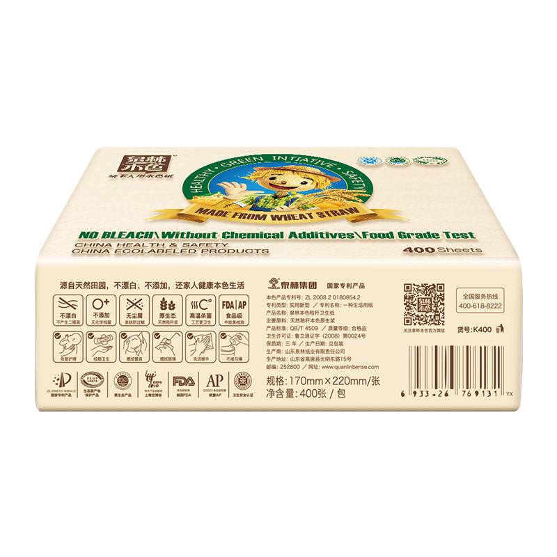 泉林本色平板卫生纸耐用加厚400张大包纸巾实惠装厕纸擦手餐巾纸