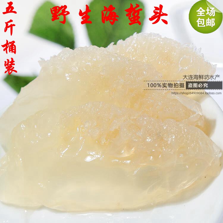 大连特产野生海蜇头海鲜非即食凉拌脆桶装包邮海蜇皮海蜇丝