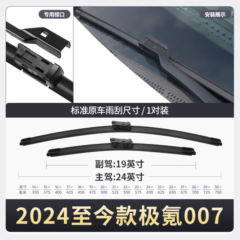 适用极氪007雨刮器2024款24原装25年原厂ZEEKR胶条专用无骨雨刷片
