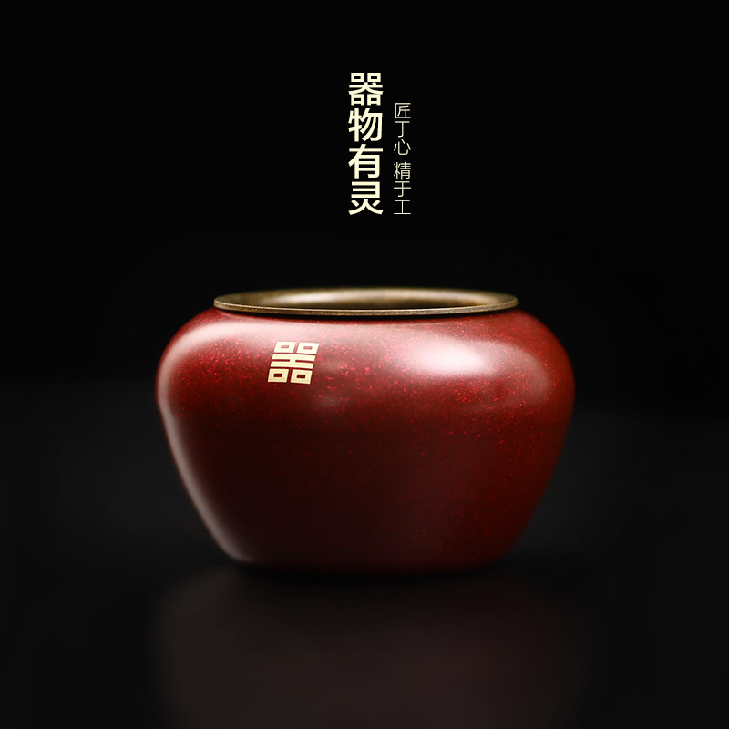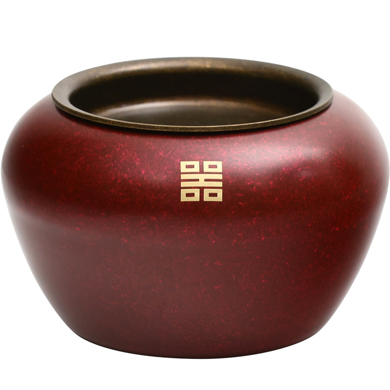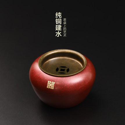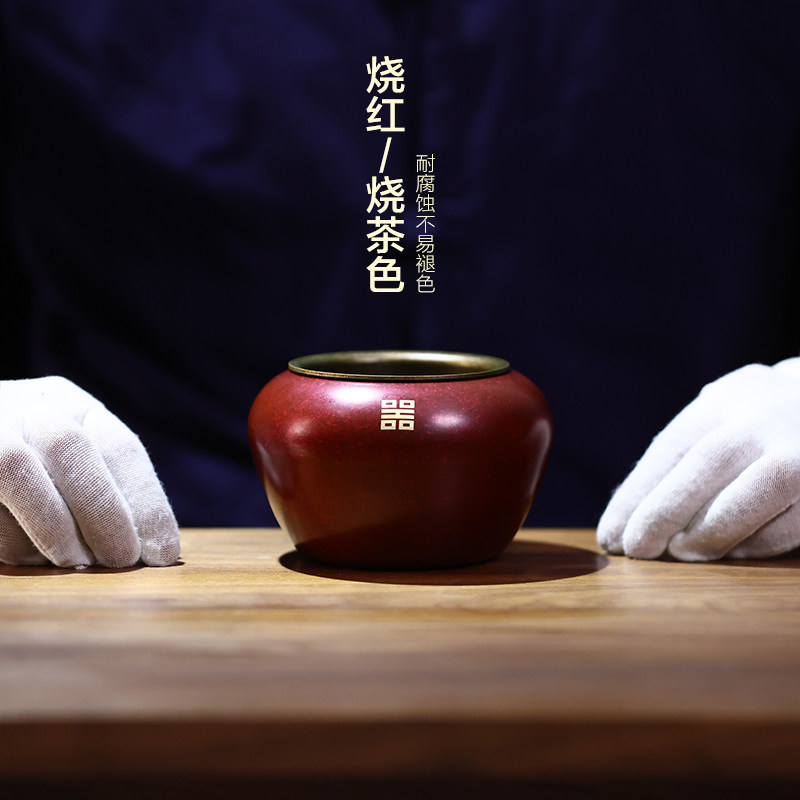 紫巅纯铜茶渣缸茶洗带盖复古家用