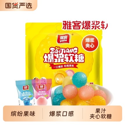 雅客爆浆软糖500g袋装散装批发儿童零食网红爆款解馋喜糖芒果夹心