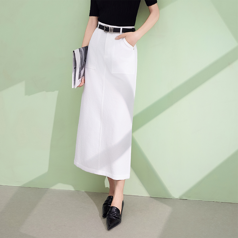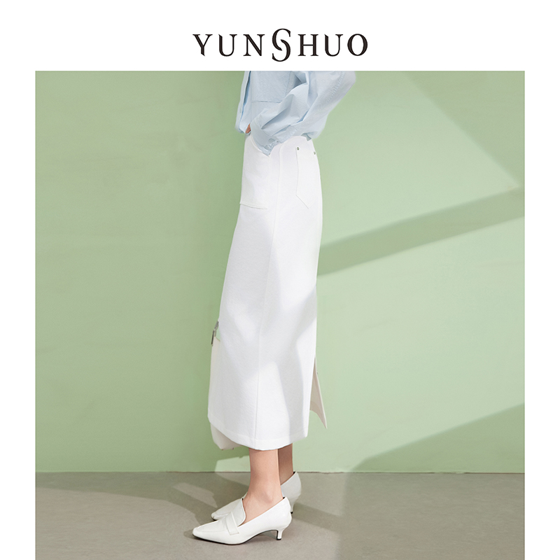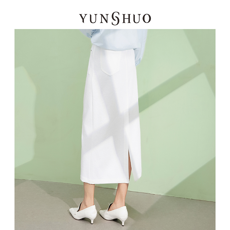 允硕夏季新品时尚百搭白色高腰气质裙子女装A字遮胯半裙219207