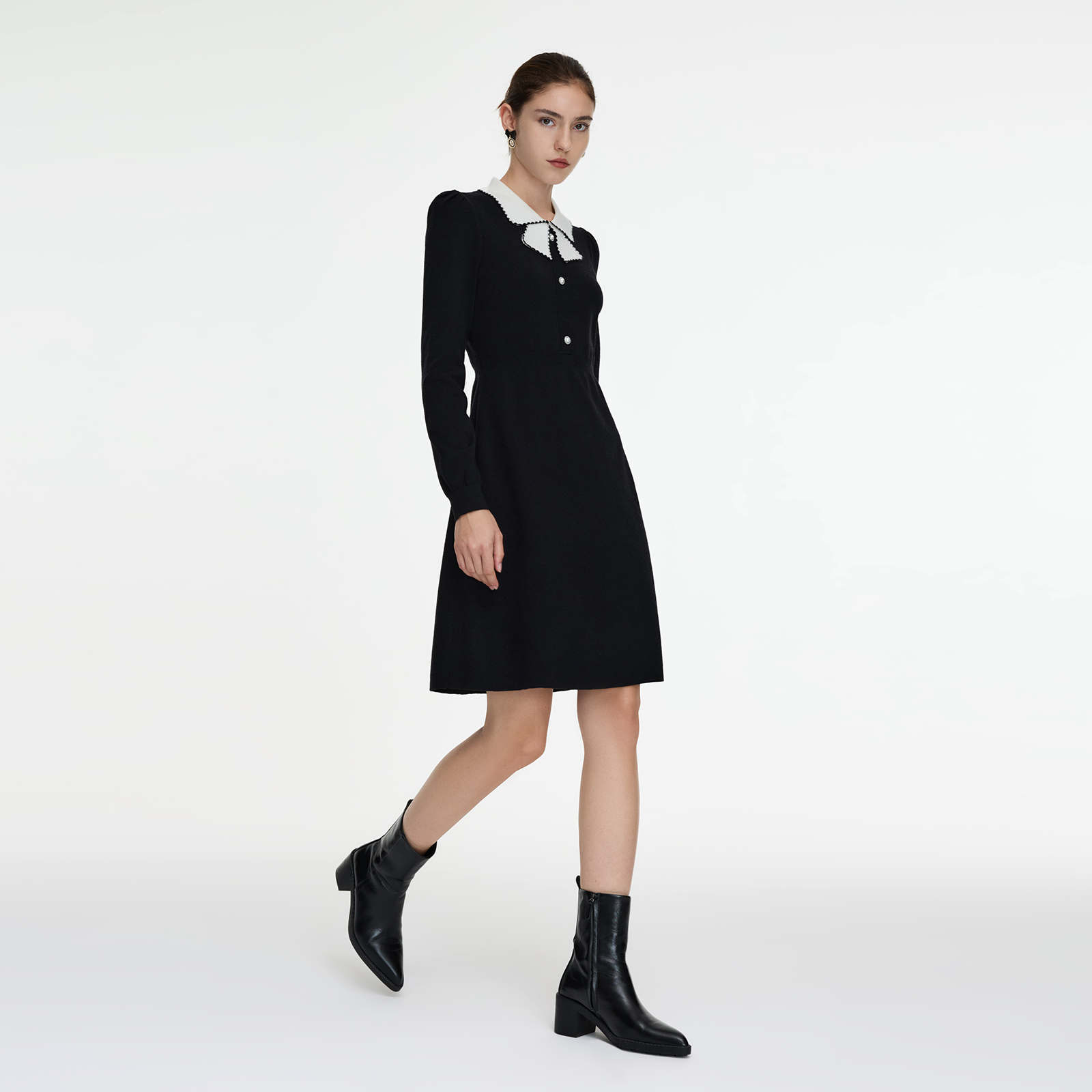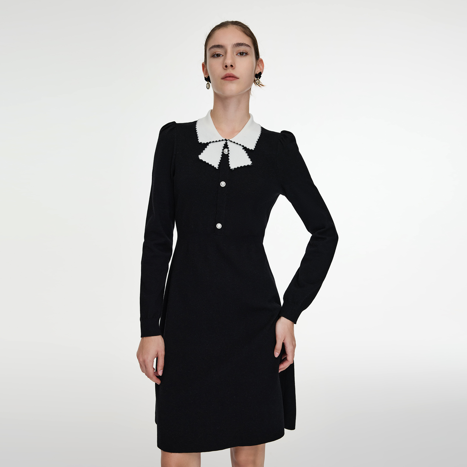 歌莉娅长袖连衣裙女2025新款秋季大方得体穿搭出席重要场合小黑裙