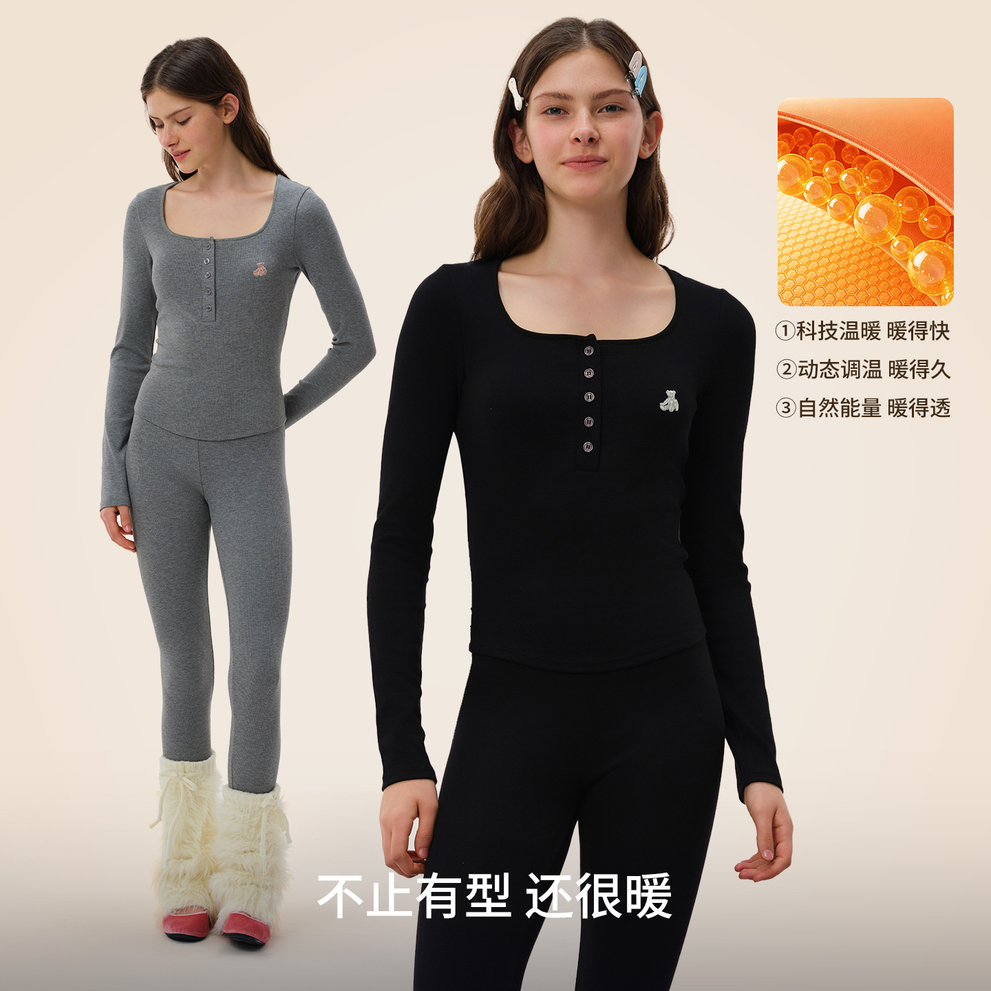 TeenieWeenie小熊秋衣女士2025秋冬新款桑蚕丝保暖内衣打底上衣女