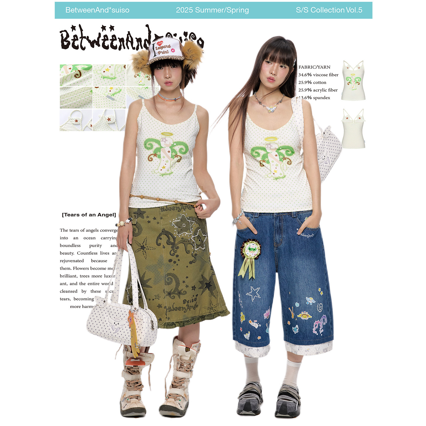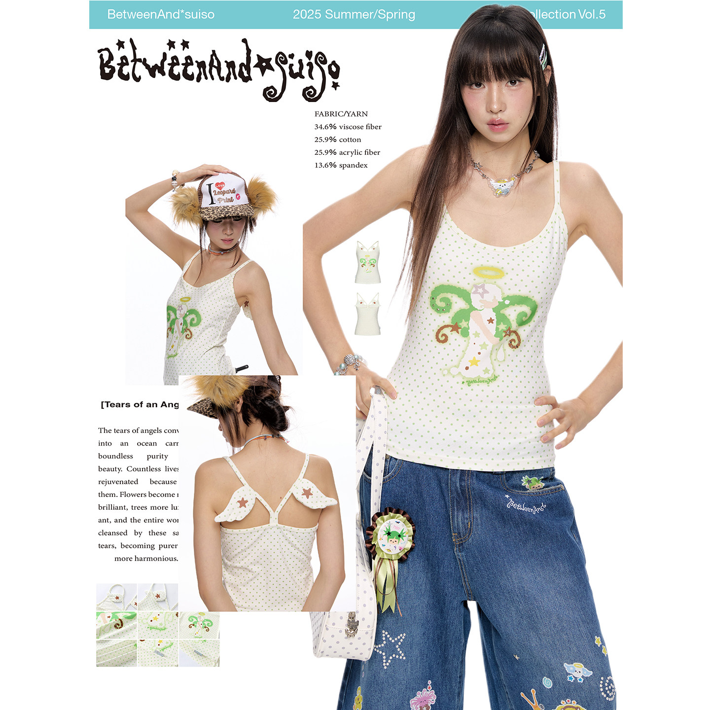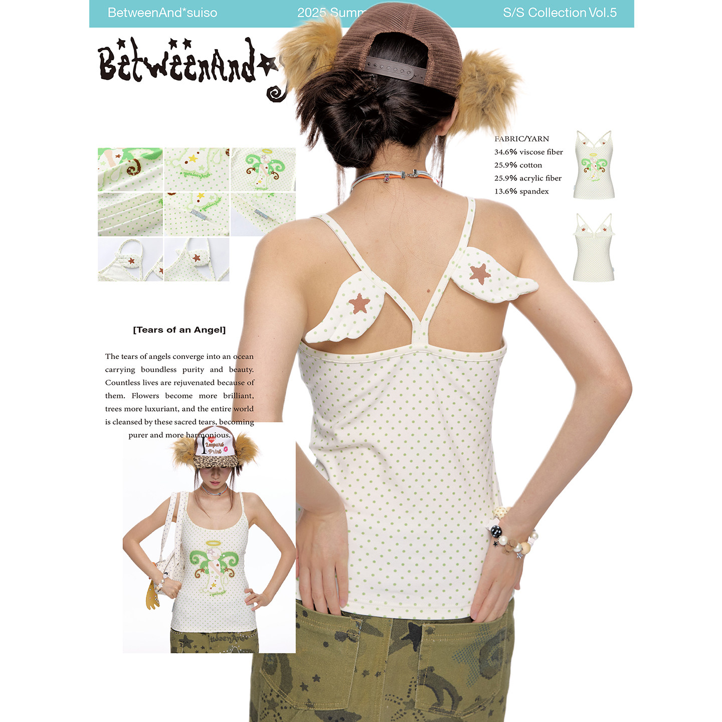 BETWEENAND 敲可爱绿色椰子波点吊带背心女背后小翅膀可外穿上衣