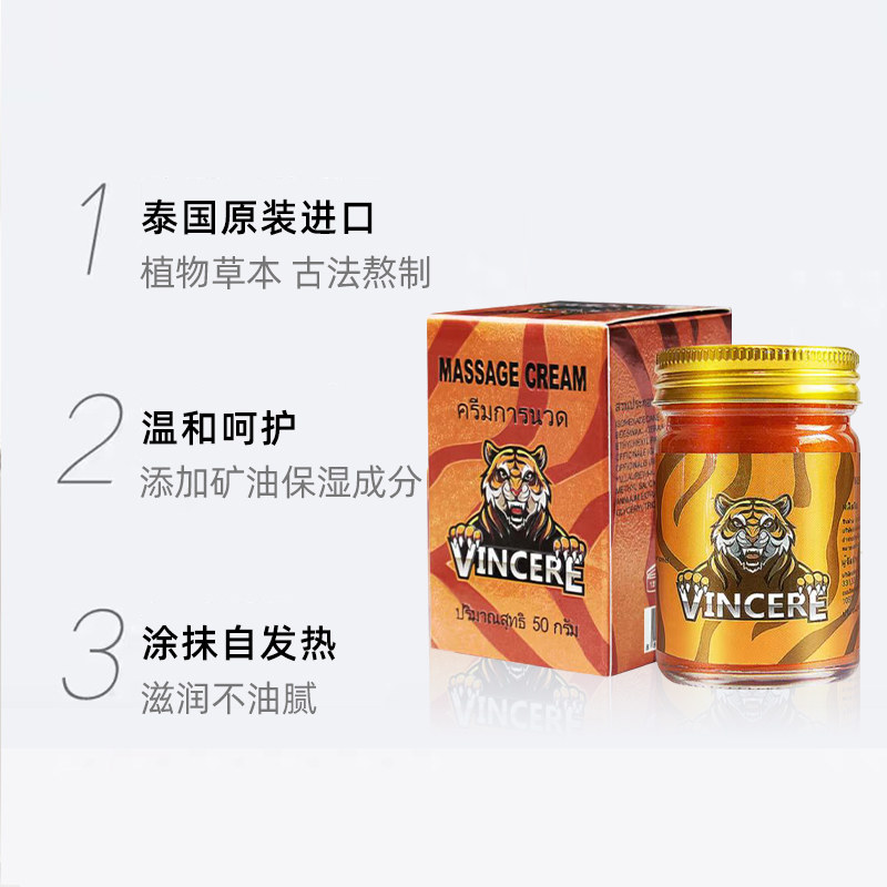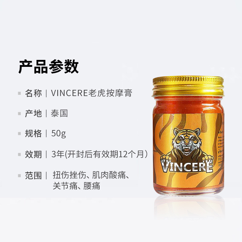 泰国VINCERE原装进口金老虎膏按摩膏腰背肩颈肌肉按摩通经发热50g