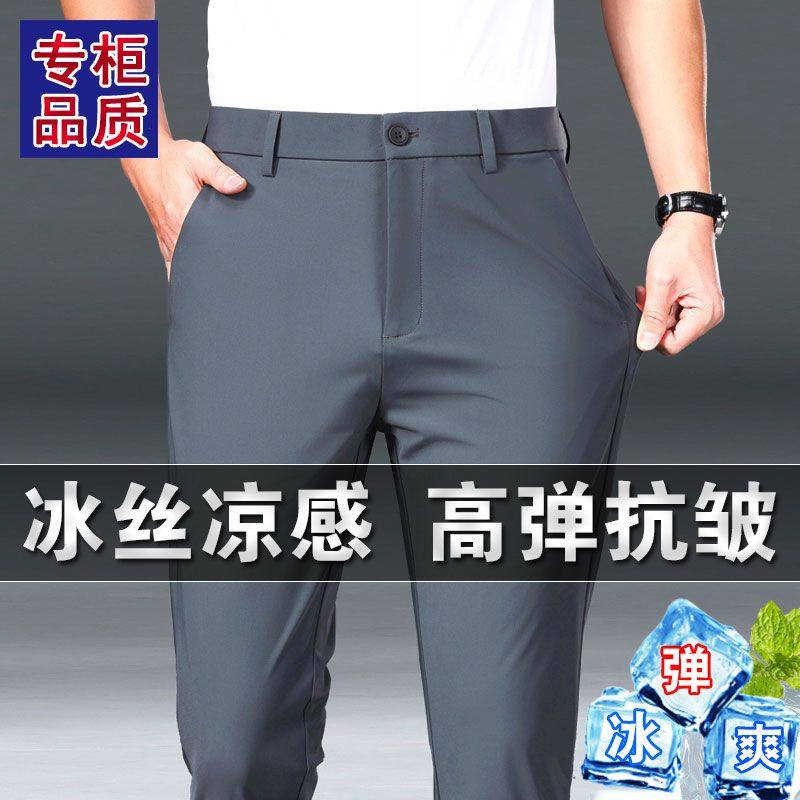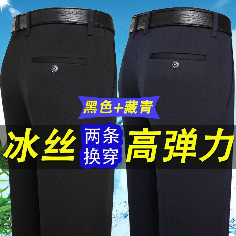 清仓处理夏季冰丝薄款休闲裤宽松直筒西裤中老年速干长裤商务裤子