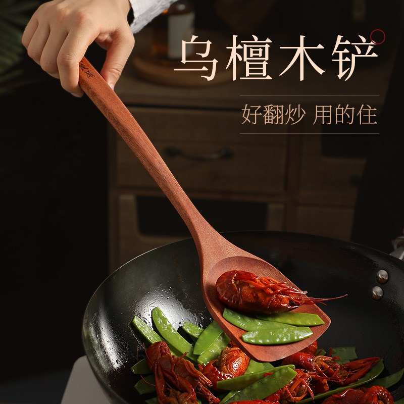 乌檀木锅铲家用不粘锅专用木质厨具木勺汤勺饭勺木头炒菜铲子木铲
