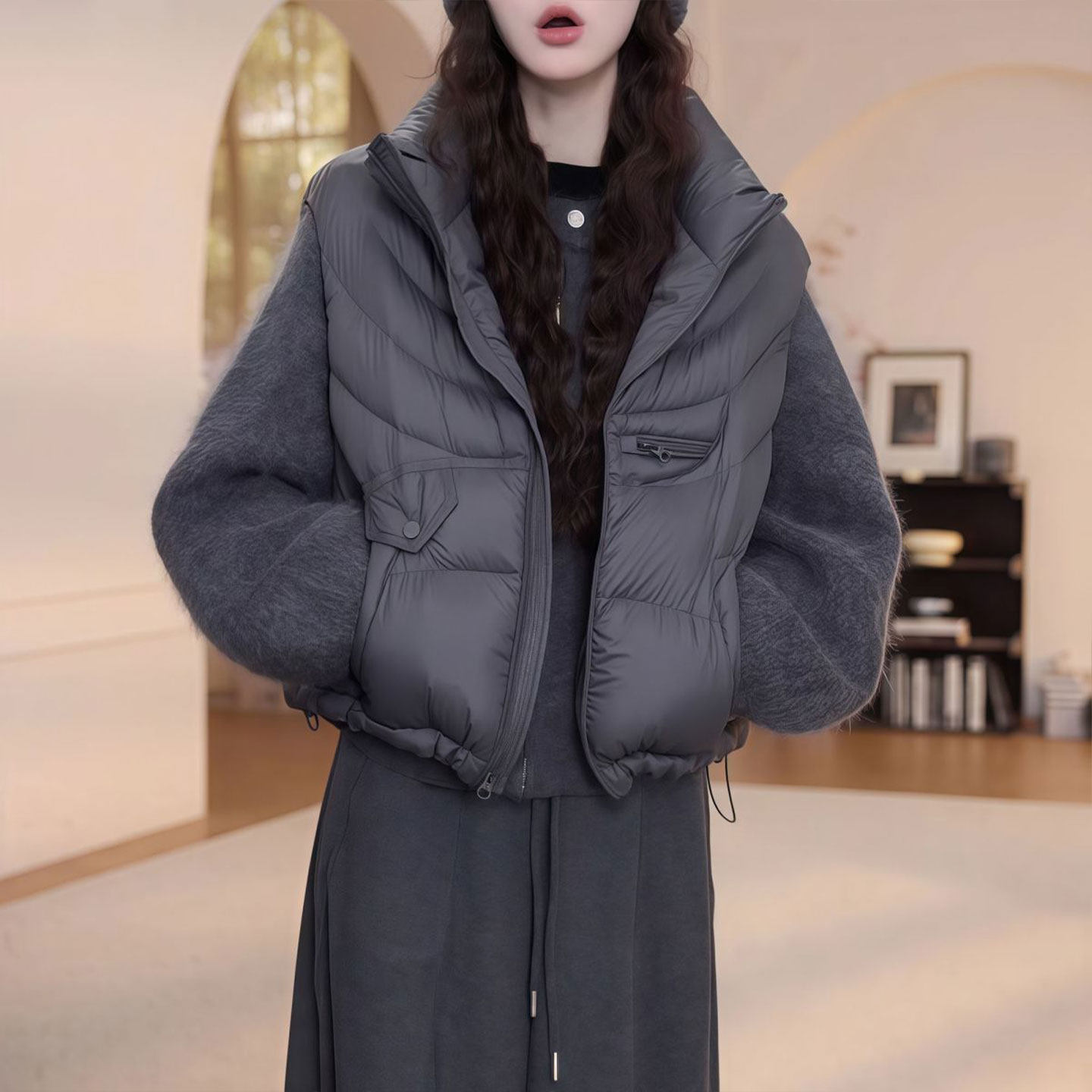 时尚韩版百搭棉服马甲外套保暖女