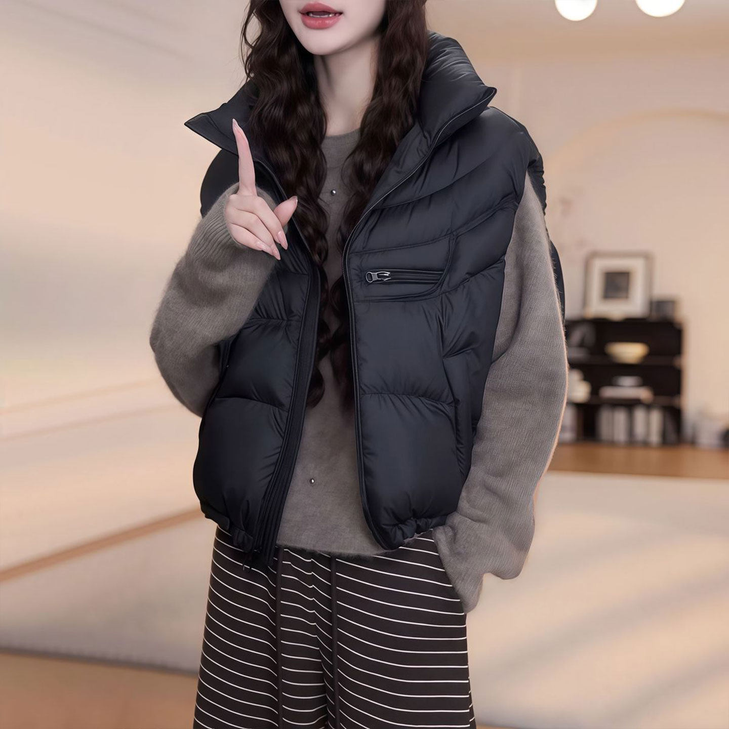 时尚韩版百搭棉服马甲女装2025秋冬新款宽松休闲保暖背心马夹外套