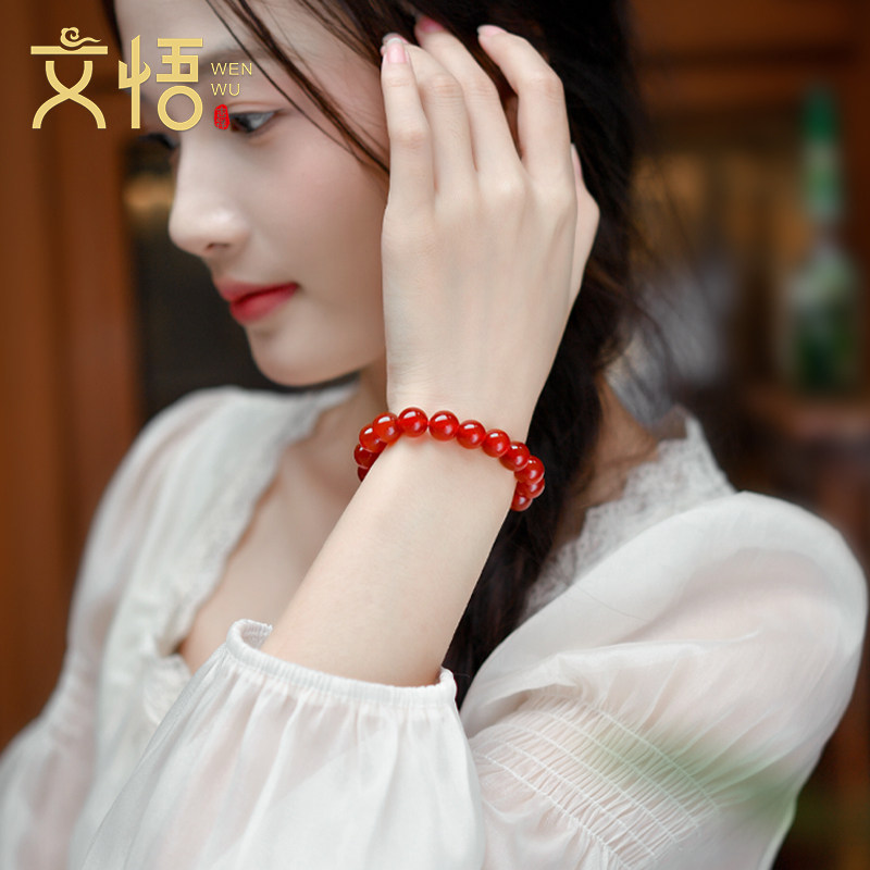 天然黑红玛瑙散珠手链白玉髓配珠