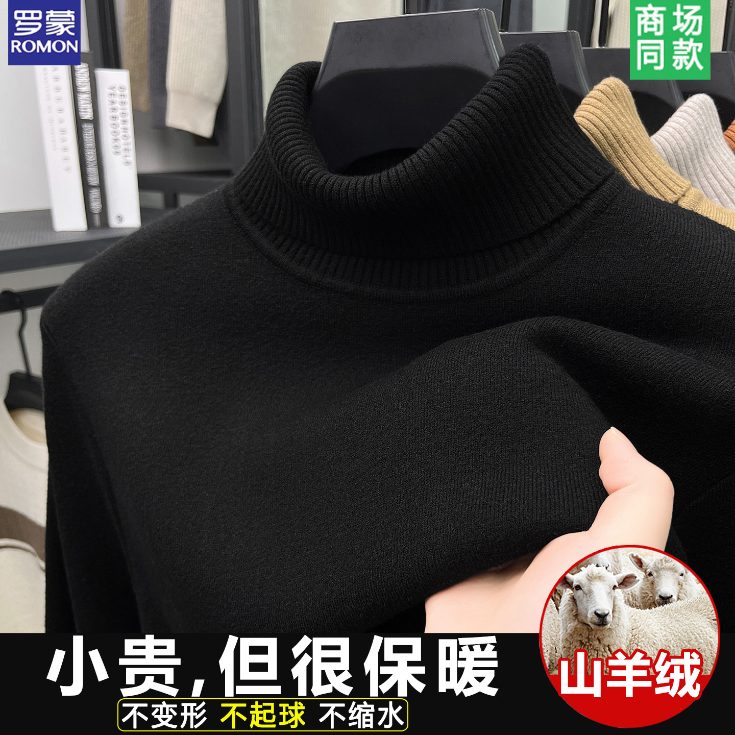 【山羊绒】罗蒙加绒加厚针织衫2025冬季男士保暖纯色高领打底毛衣