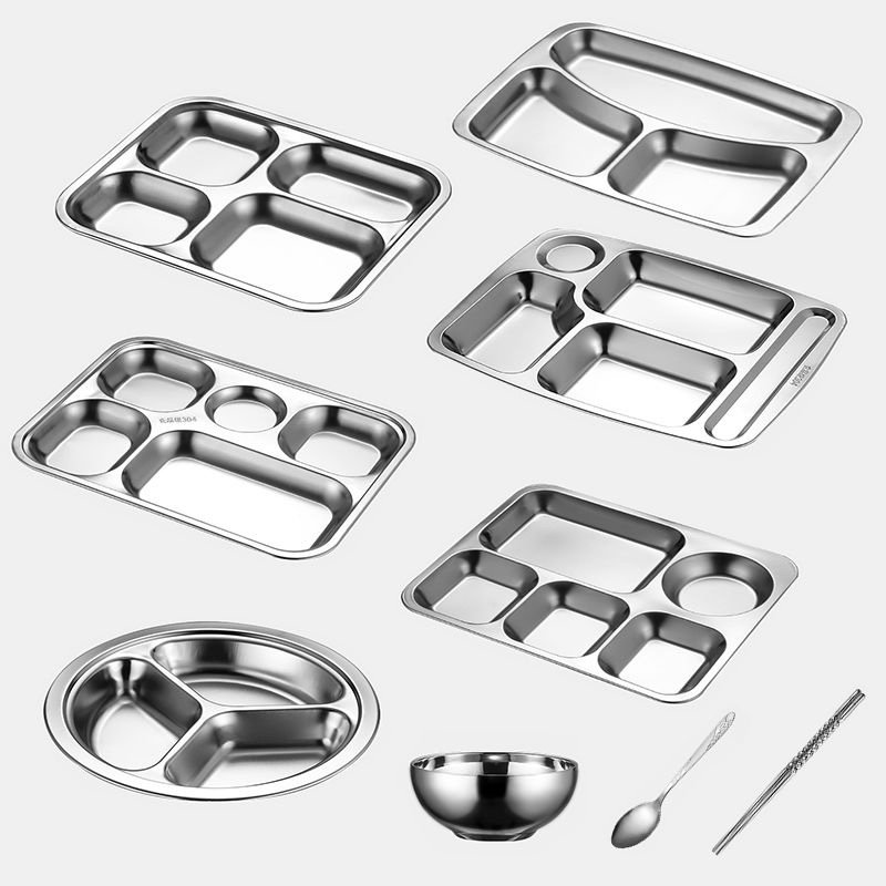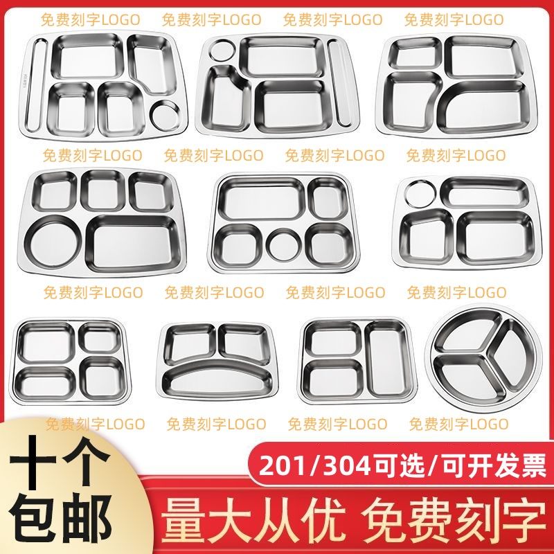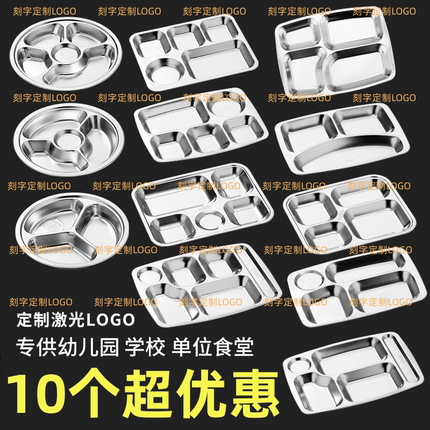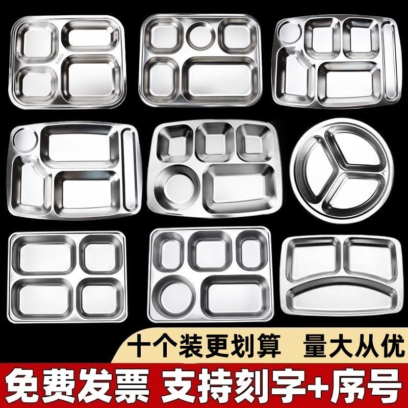 加厚304不锈钢餐盘学校食堂饭盘儿童餐具商用分格快餐盘托盘刻字