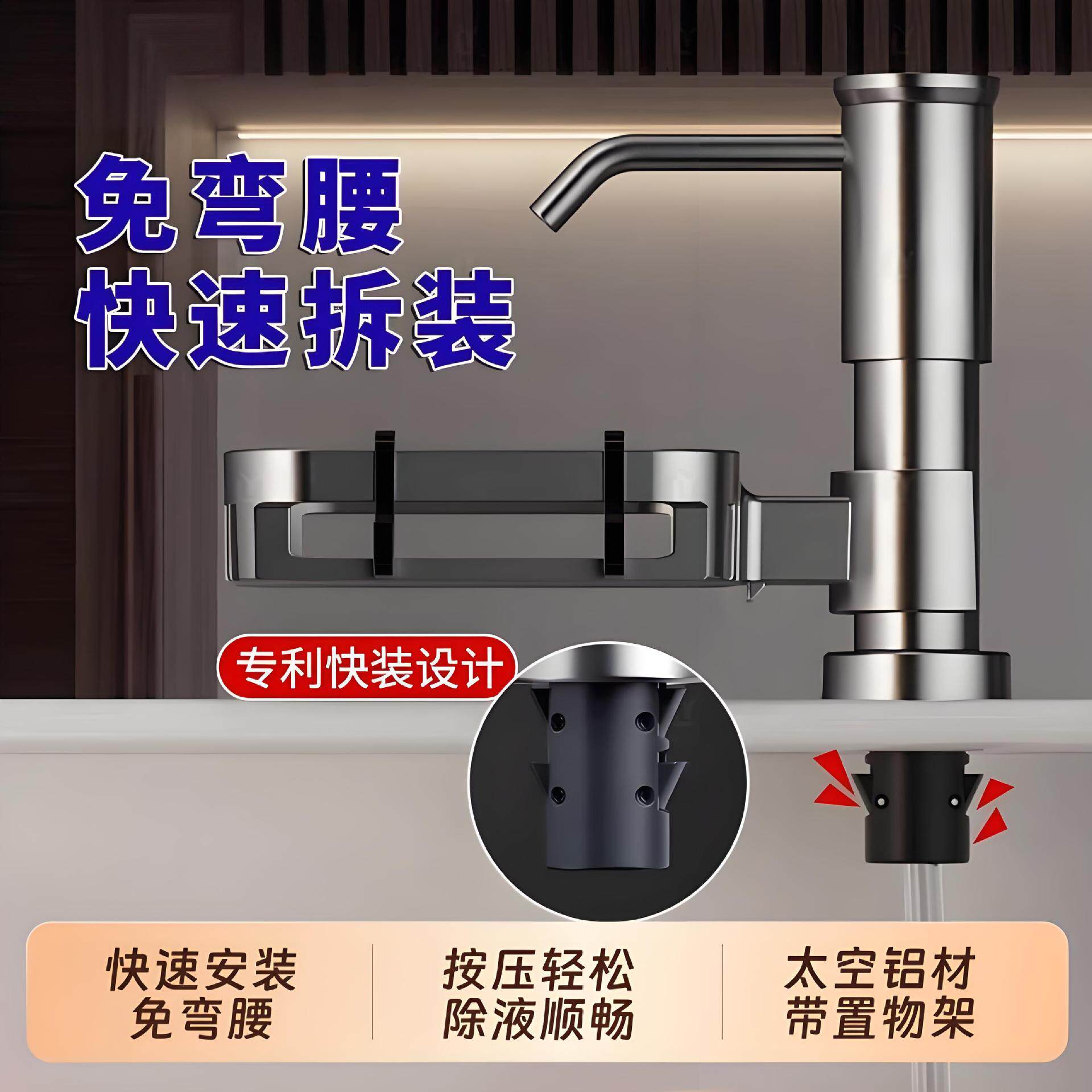 厨房水槽皂液器通用洗菜盆快装洗洁精压取器太空铝加高延长按压器